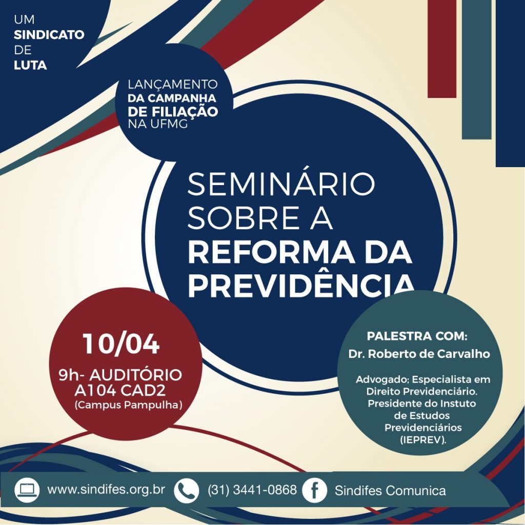 SEMINÁRIO SOBRE A REFORMA DA PREVIDÊNCIA 08/04/2019InformaçõesSeção de Tecnologia da Informação Divulgamos abaixo a sugestão da nossa colega Eliane Ferreira de Barros da Seção de Pessoal.